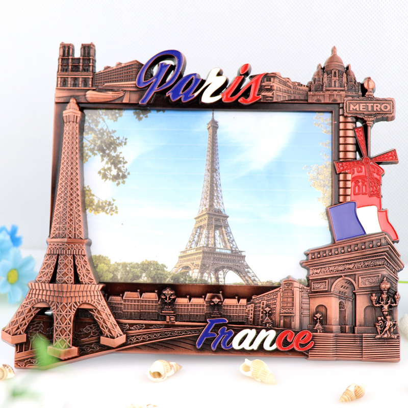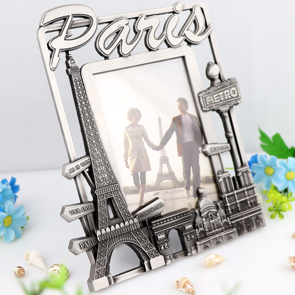 Custom Design Zinc Alloy Vintage Paris Souvenir Table Decor Metal Photo Picture Frame